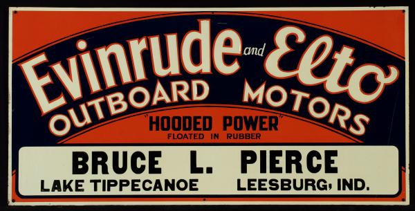 A NICE 1930s EVINRUDE AND ELTO MOTORS ADVERTISING SIGN