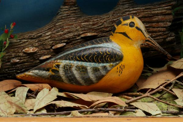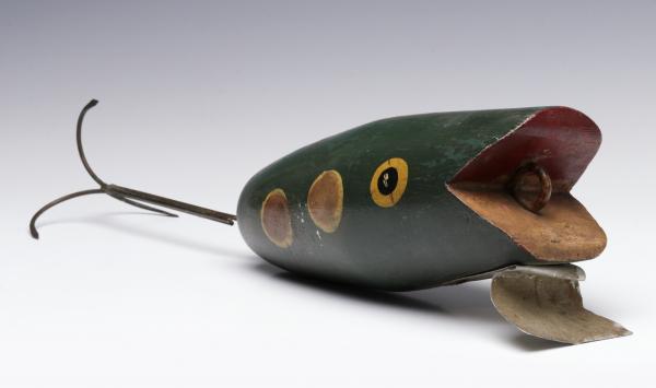 AN OVERSIZED CARVED AND PAINTED WOOD FISHING PLUG