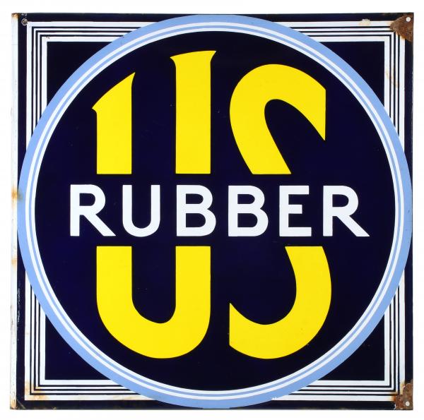 A VINTAGE US RUBBER PORCELAIN ENAMEL FLANGE SIGN