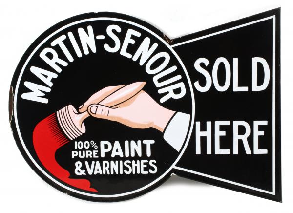 A MARTIN-SENOUR PAINT PORCELAIN ENAMEL FLANGE SIGN
