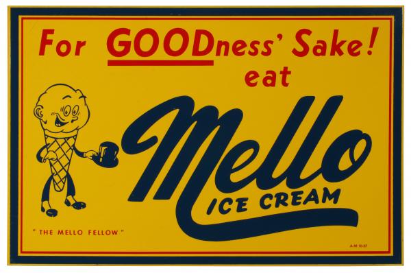 A NICE, BRIGHT MELLO ICE CREAM FLANGE SIGN DATED 1957