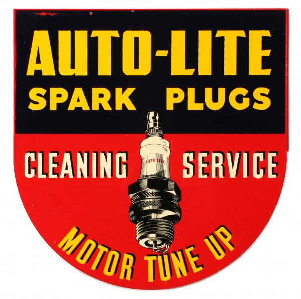A BRIGHT SHINY MID 20TH C AUTO-LITE SPARK PLUGS FLANGE
