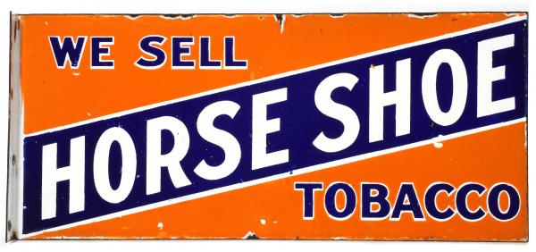 WE SELL HORSE SHOE TOBACCO | ENAMEL FLANGE SIGN