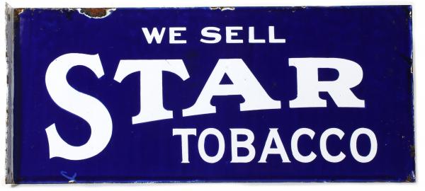 WE SELL STAR TOBACCO | PORCELAIN ENAMEL FLANGE SIGN