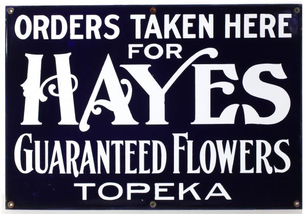 HAYES GUARANTEED FLOWERS TOPEKA | PORCELAIN ENAMEL SIGN