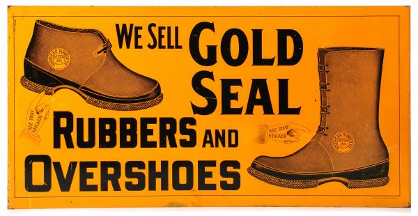 GOLD SEAL GOODYEAR SHOES PAINTED TIN FLANGE SIGN