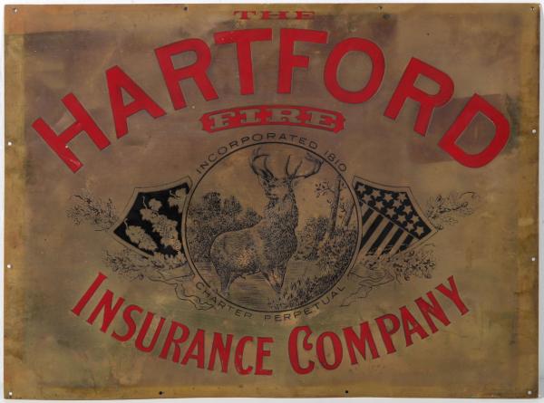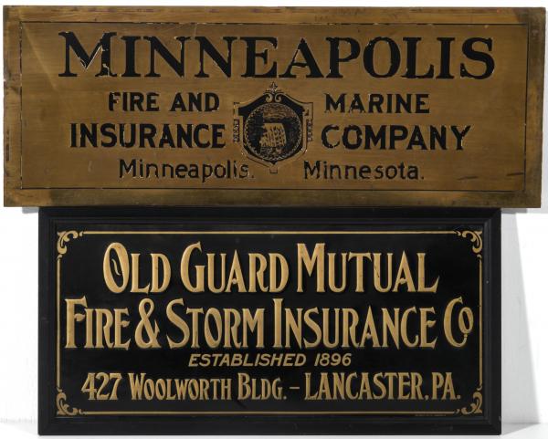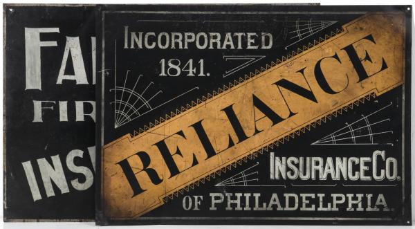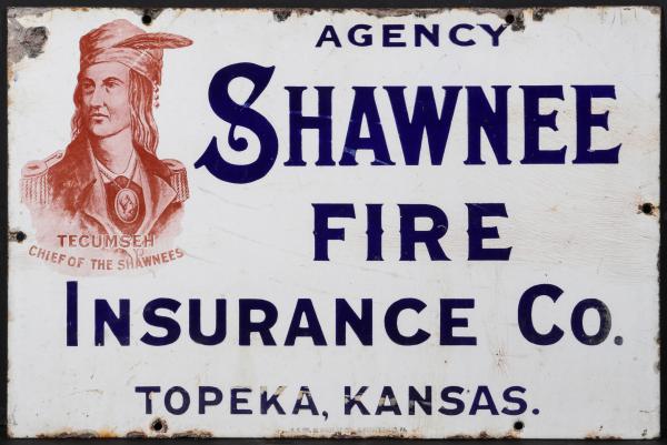 AN UNUSUAL SHAWNEE FIRE INSURANCE SIGN WITH PORTRAIT
