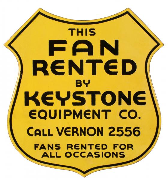 THIS FAN RENTED BY KEYSTONE | PORCELAIN ENAMEL SIGN