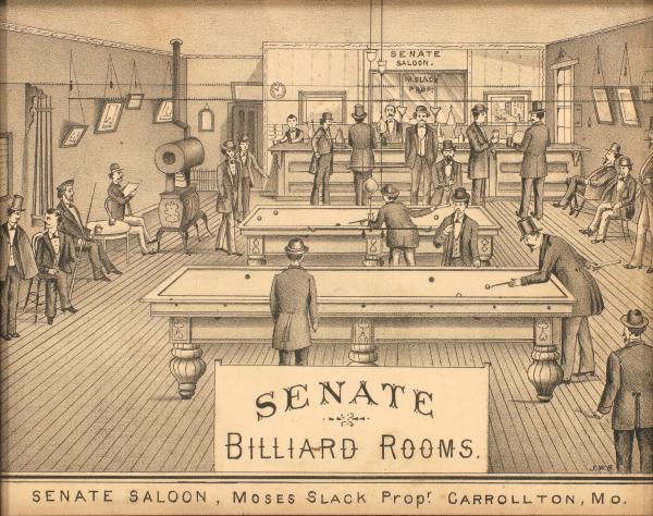 CIRCA 1880 LITHO | SENATE BILLIARD ROOMS CARROLLTON MO