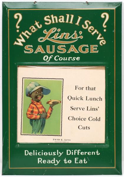 LIN'S SAUSAGE TIN LITHO SIGN WITH CHANGEABLE MESSAGE