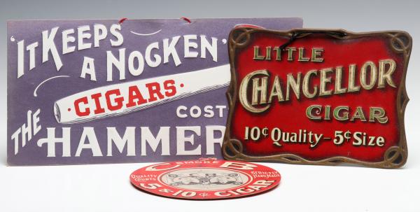 THREE 5 CENT ROOT BEER BARREL SIGNS CIRCA MID 20TH CENT