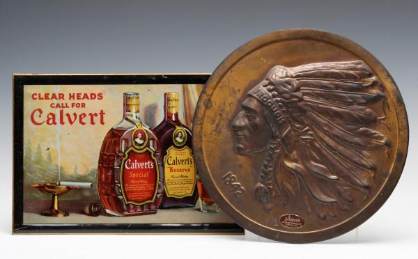 TWO UNRELATED ANTIQUE AND VINTAGE ADVERTISING SIGNS