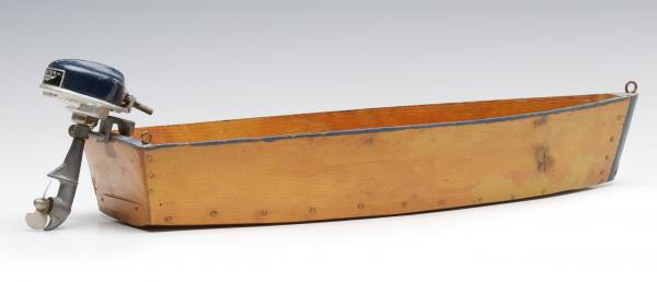 AS SMALL FOLK ART HAND MADE WOOD DINGY WITH D.C. MOTOR