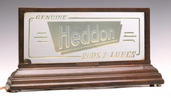 GENUINE HEDDON RODS AND LURES LIGHTED ADVERTISING SIGN