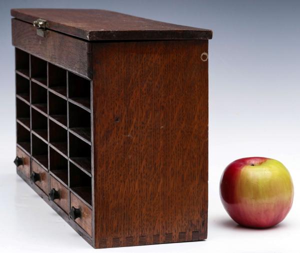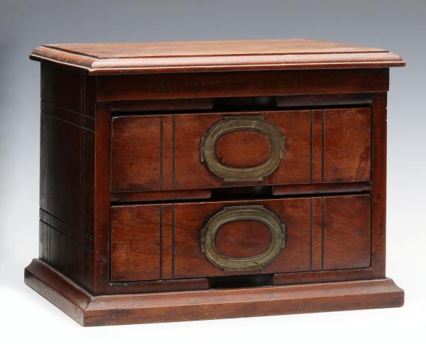 AN UNUSUAL DIVIDED CASE OF DRAWERS WITH LIFT TOP