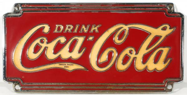 A SMALL CHROME AND ENAMEL COCA COLA PLAQUE