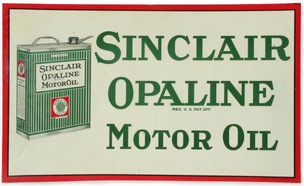 A LITHOGRAPHED TIN SIGN FOR OPALINE MOTOR OIL WITH CAN