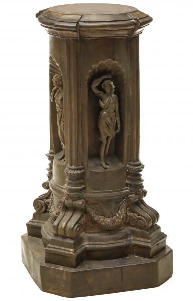 CAST BRONZE COLUMNAR PEDESTAL WITH FULL-BODIED FIGURES