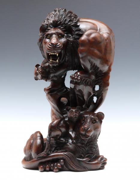 LARGE CINNABAR LACQUER BOXES INCLUDING FIGURAL RAM