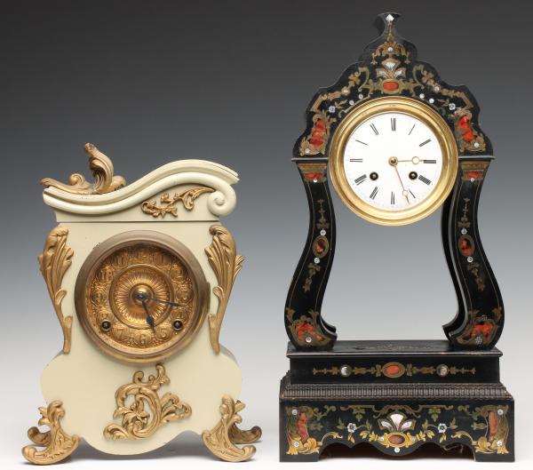 ANSONIA PAINTED IRON CASE AND FRENCH BOULLE CASE CLOCKS