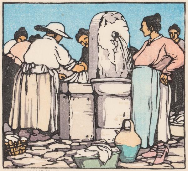 NORMA BASSETT HALL (1889-1957) SIGNED COLOR WOODBLOCK
