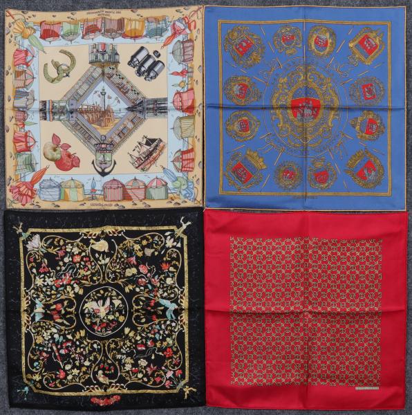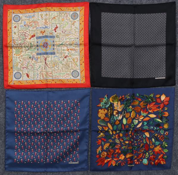 FOUR HERMES MEN'S SILK HANDKERCHIEFS