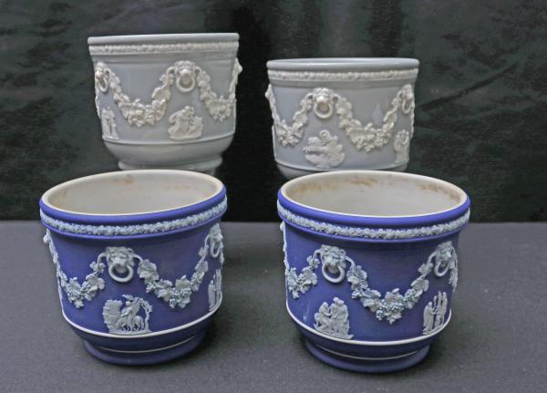 WALNUT AND BURR VENEER JARDINIERE PLANTERS