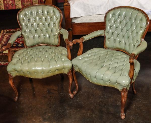 VINTAGE HICKORY CHAIR FRENCH STYLE FAUTEUIL IN LEATHER