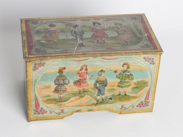AN ANTIQUE FRENCH TIN LITHO CHILD'S LUNCH TIN