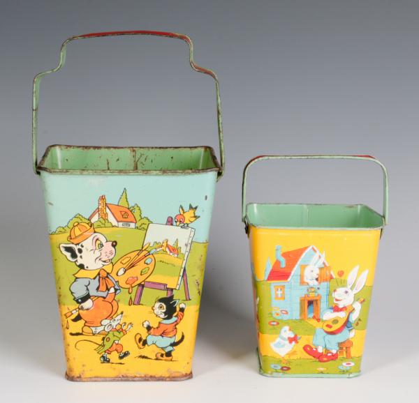 TWO GOOD VICTORIAN TIN LITHO SAND PAILS