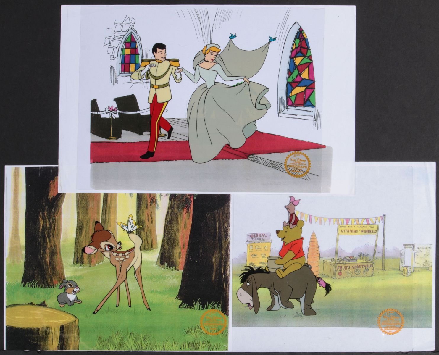 Scenes from 'Bambi,' 'Cinderella' and 'Winnie the Pooh and the Blustery Day.' All three with Certificates of Authenticity and stamps on the print.