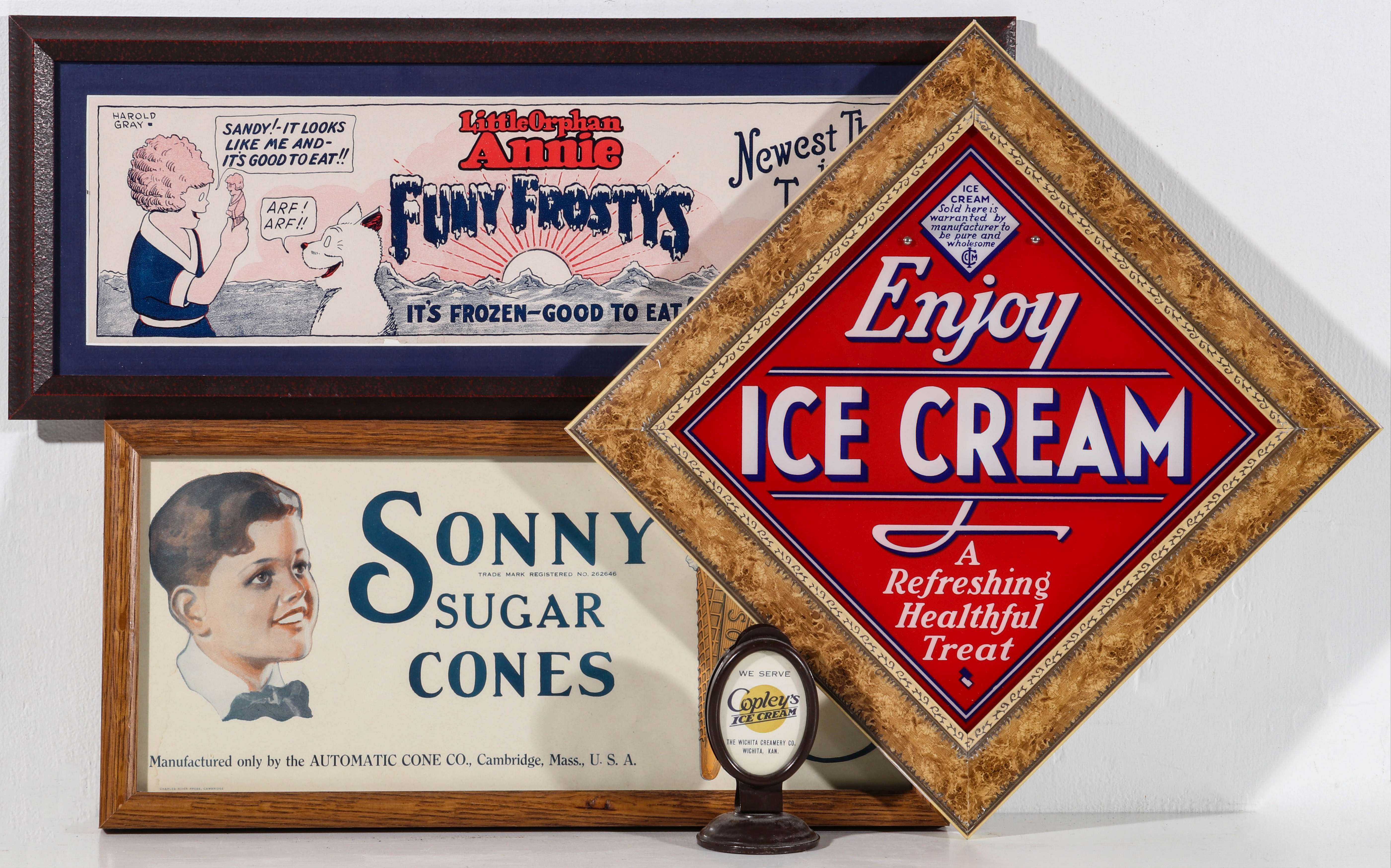 Home / The Retchless Estate Collection / A GROUP OF ICE CREAM ADVERTISING PIECES 1930 TO 1960.
