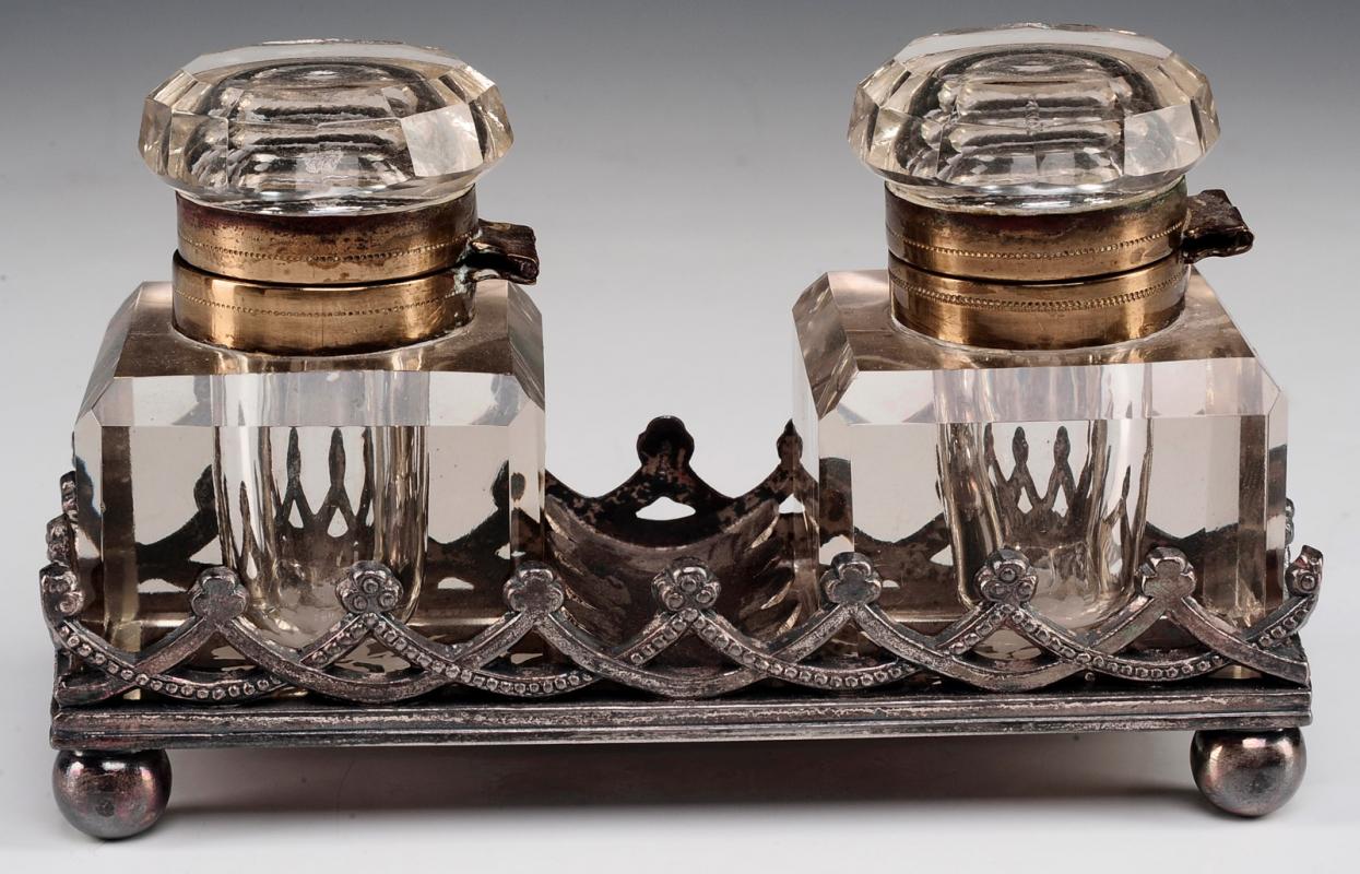 Home / Furniture, Paintings, Sculpture and More / A CIRCA 1900 SILVER PLATED DOUBLE INKWELL