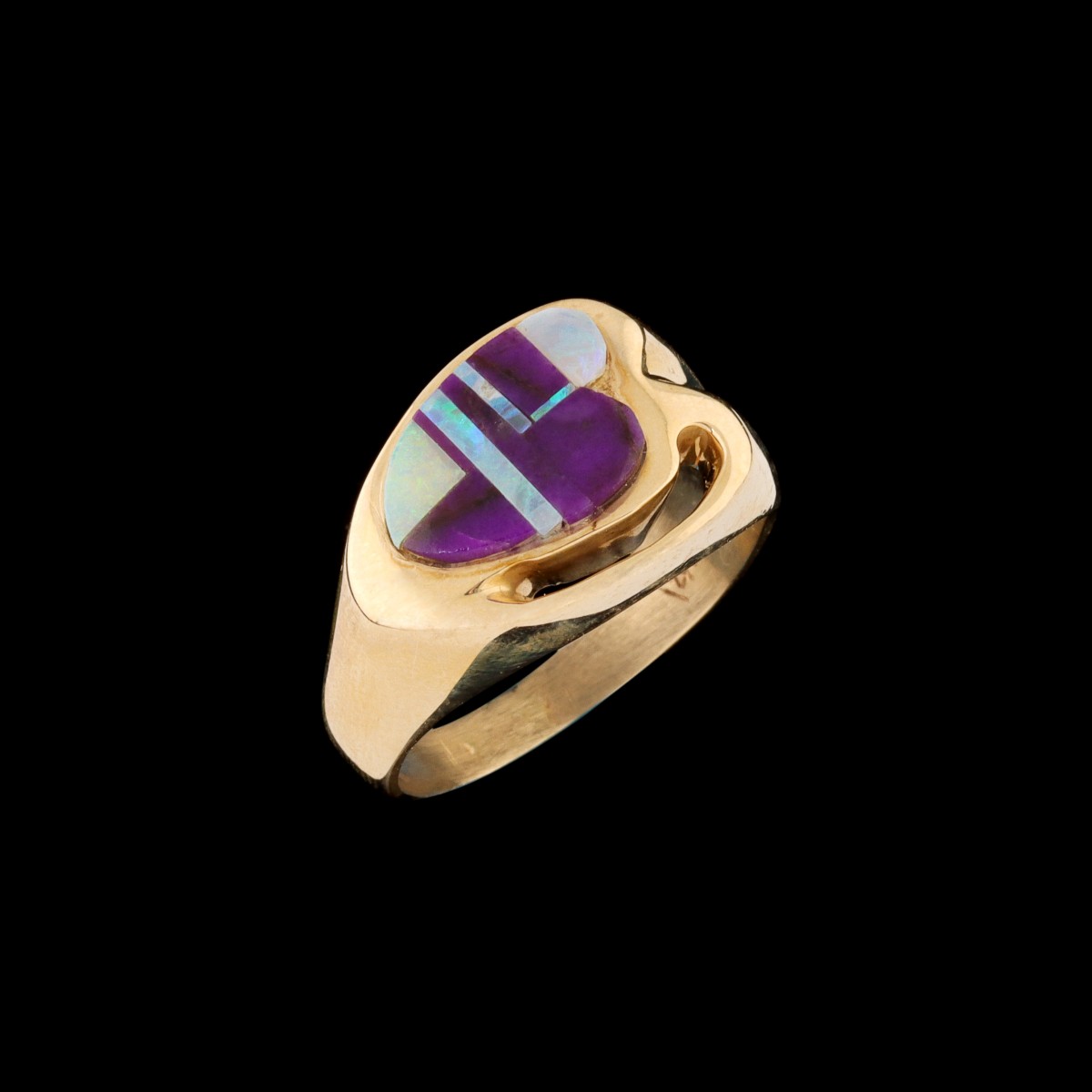 Home / Native American Fine Art and Cultural Objects / A 14K YELLOW GOLD RING WITH INLAID OPAL