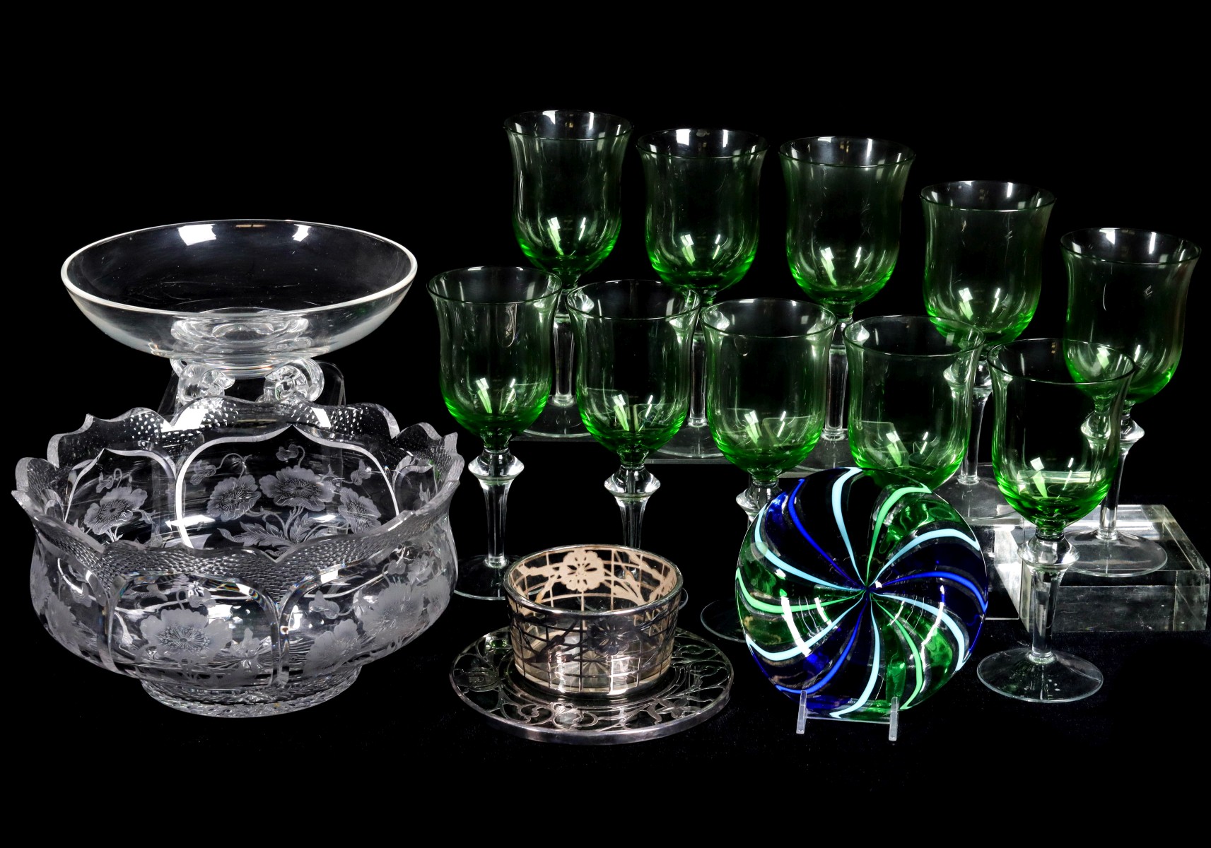 5. Green bowl stemware.