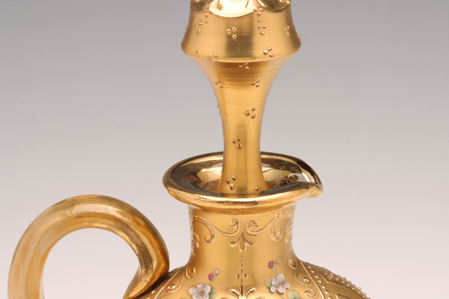 Home / Our 26th Annual Spring Fine Art Auction / A 19TH CENTURY MOSER GILT AND ENAMELED ART GLASS JUG