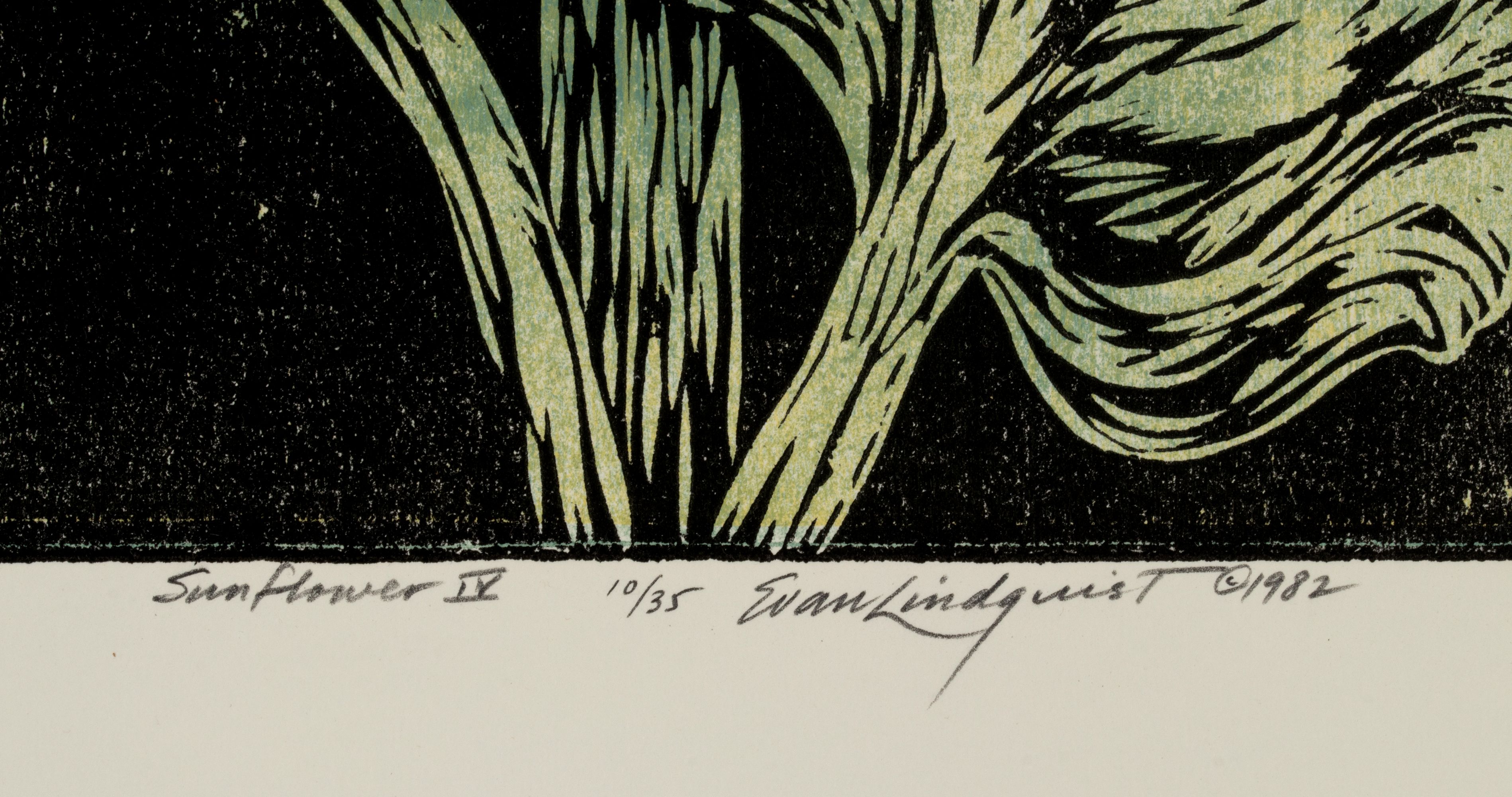 2) Sunflower IV color wood engraving, numbered 10 in an edition of 35, signed by the artist in pencil lower center and dated 1982. Image measures 9.25 x 7, sheet is 13.5 x 11.5 inches.