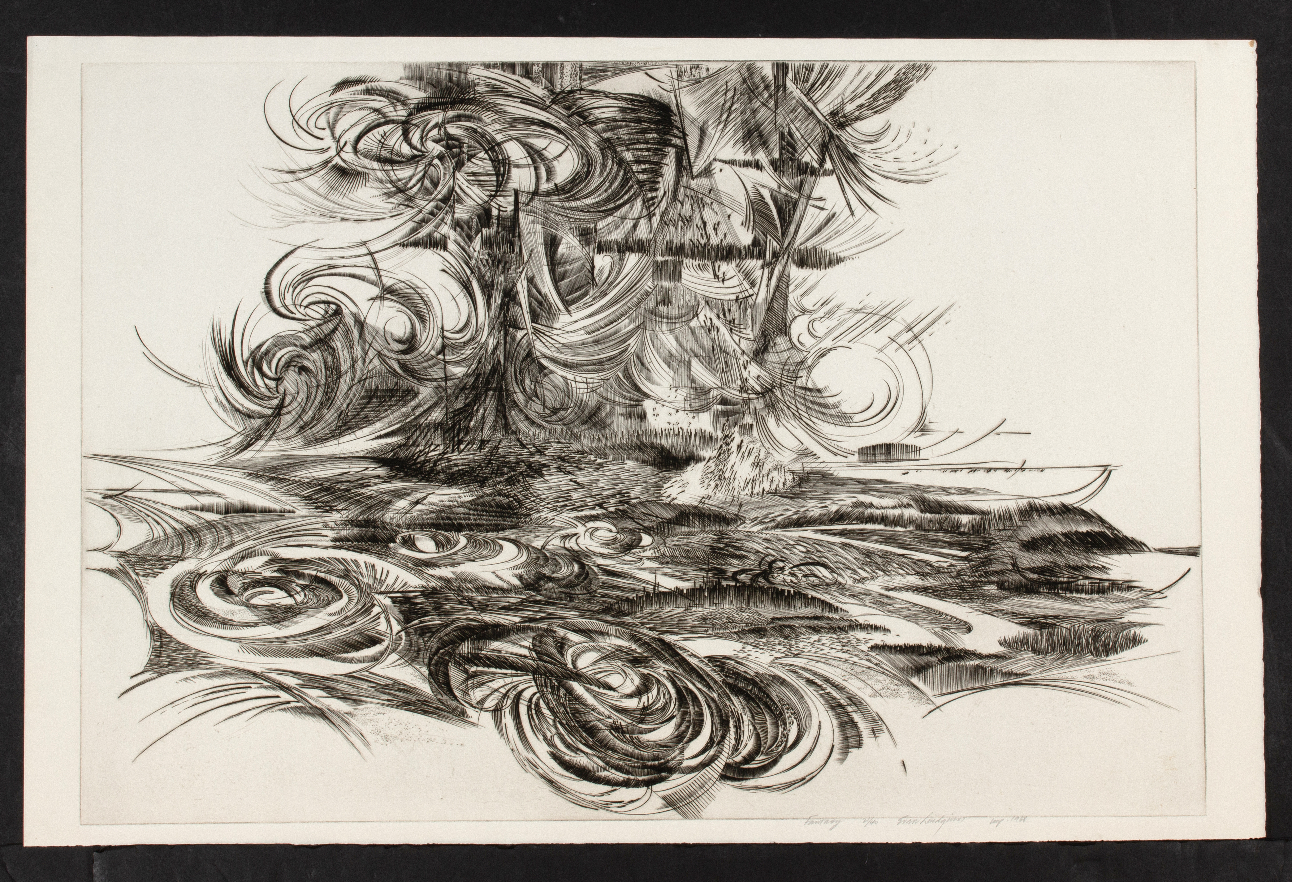 6) Fantasy (1968) The drypoint etching, numbered 18 in an edition of 40 prints is signed by the artist in pencil below the image lower right and titled lower left. Image measures 23.5 x 34.5, sheet is 25 x 38.5 inches.