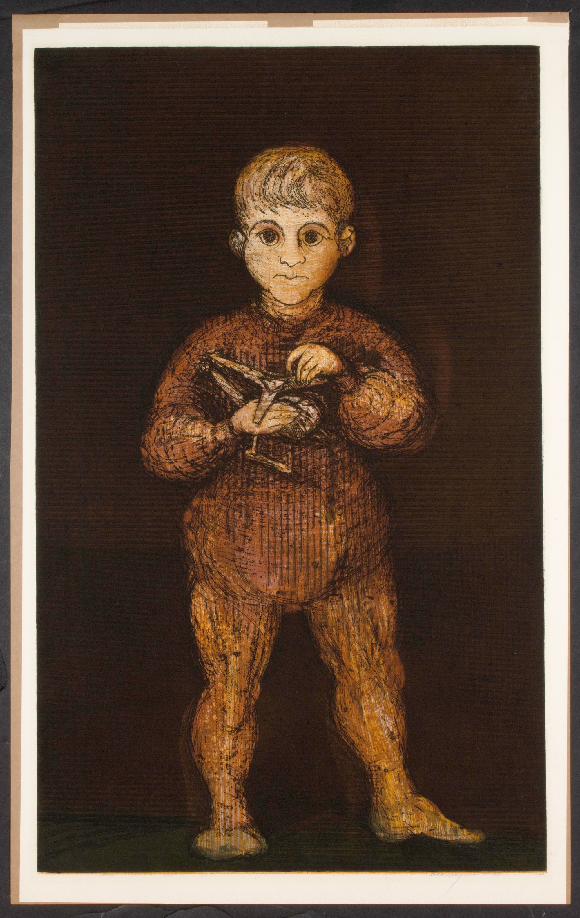 5) Eric (1967) The color etching, numbered 1 in an edition of 30 prints, is signed by the artist in pencil below the image lower right and titled lower left. Image measures 35.5 x 21.75, sheet is 38.5 x 24 inches.