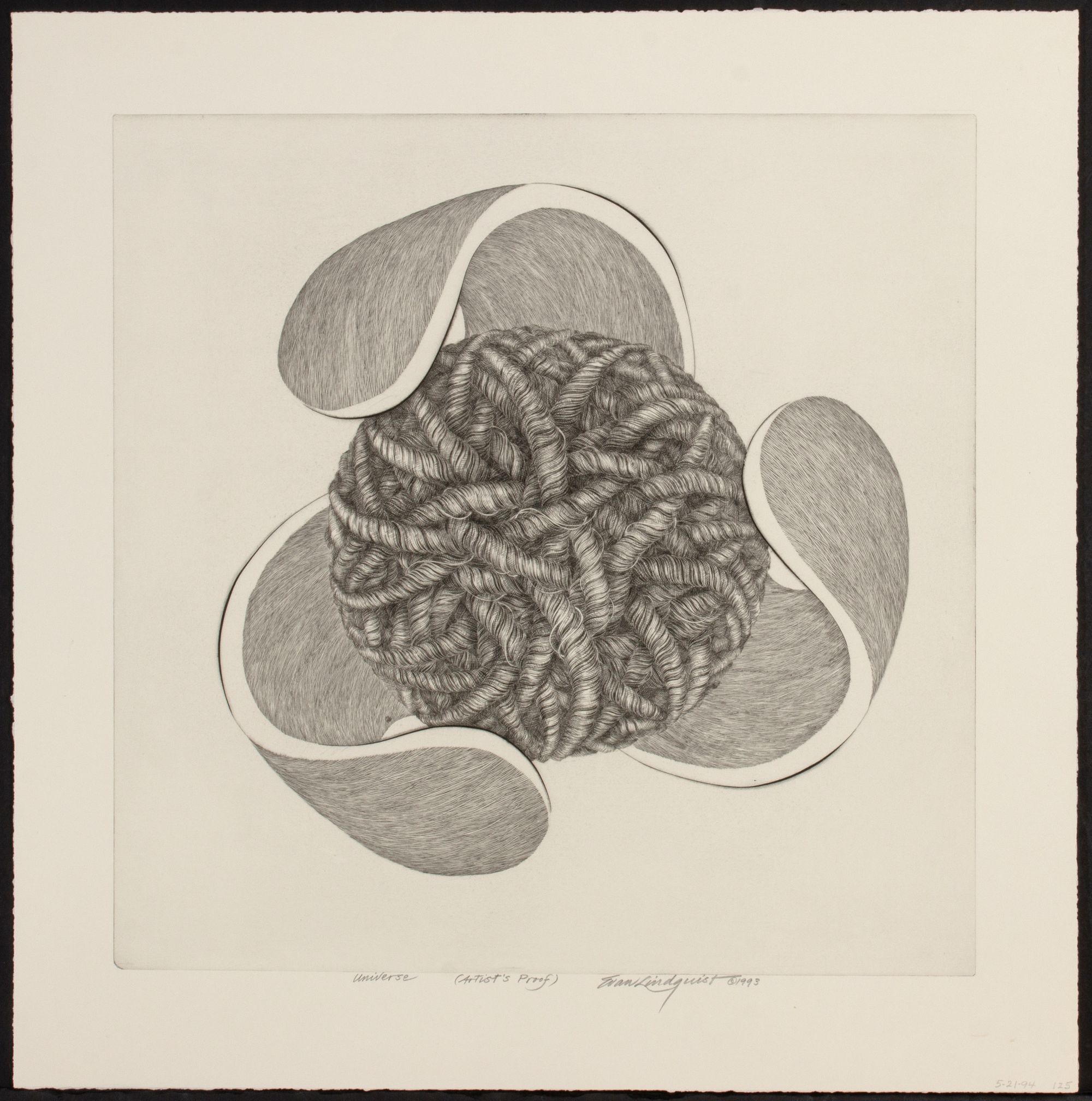 5) Universe (1993). The drypoint etching, noted as an Artist's Proof, is titled and signed by the artist in pencil below the image lower center.