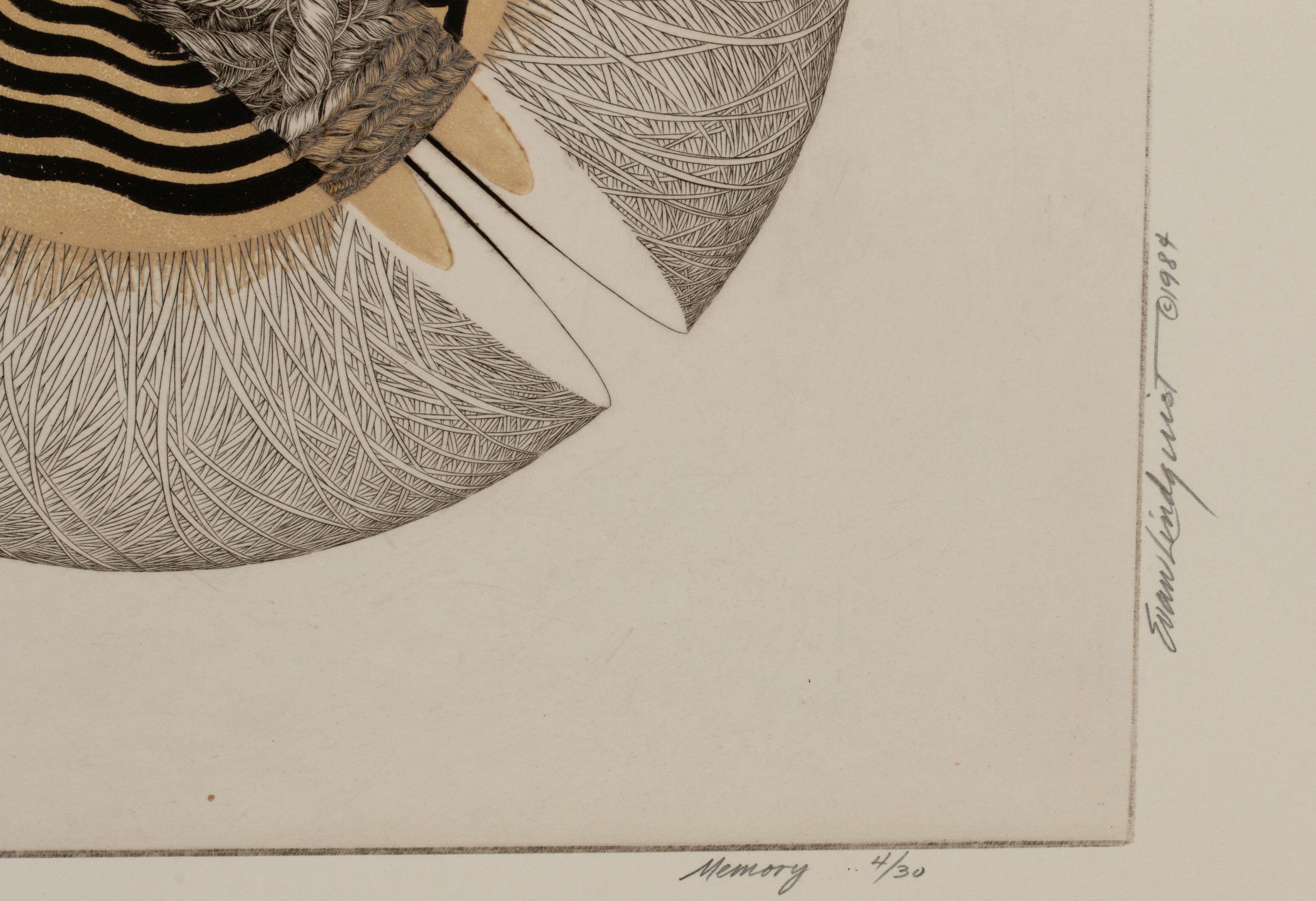 7) Memory (1984). The color etching, numbered 4 in an edition of 30 prints, is titled and signed by the artist in pencil below the image lower right.