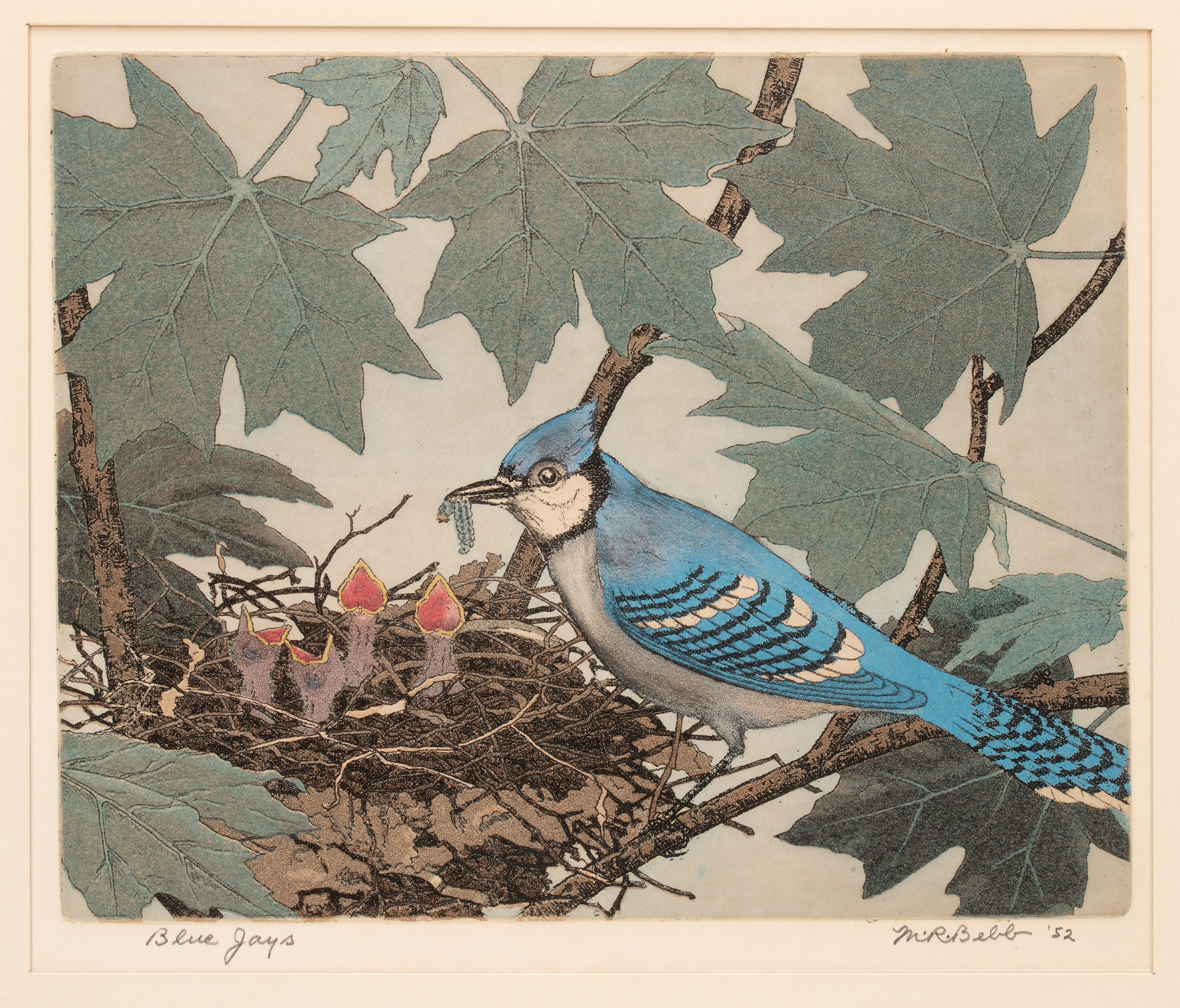 2) Blue Jays (1952) The aquatint etching is signed and dated by the artist in pencil below the image lower right and titled lower left.