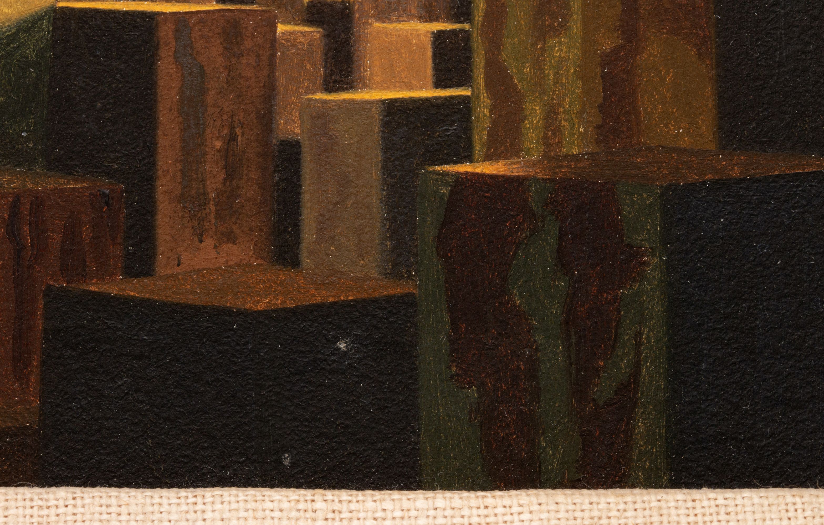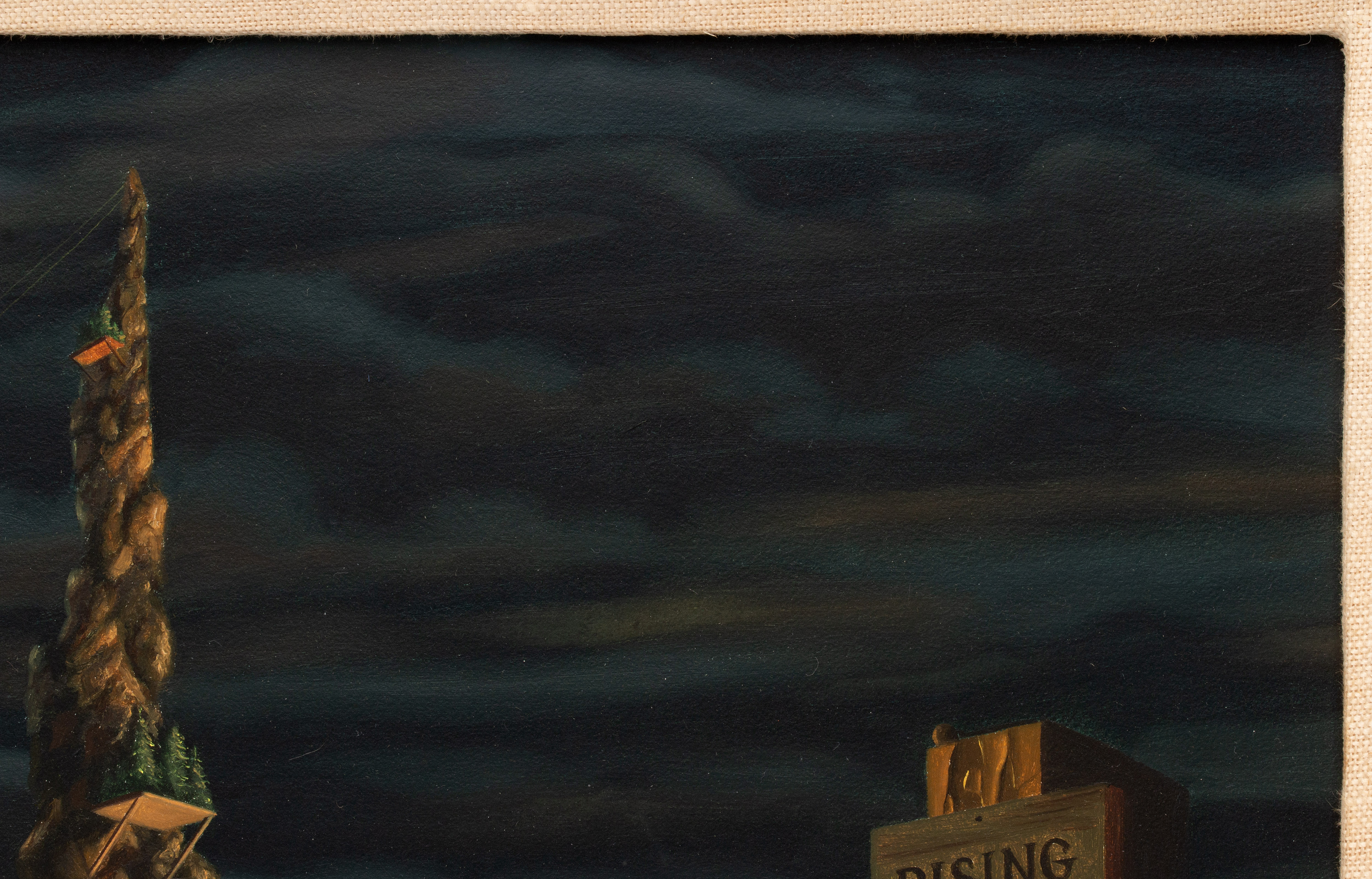 The surrealistic fantasy landscape with trompe-l'oeil technique is signed lower right.