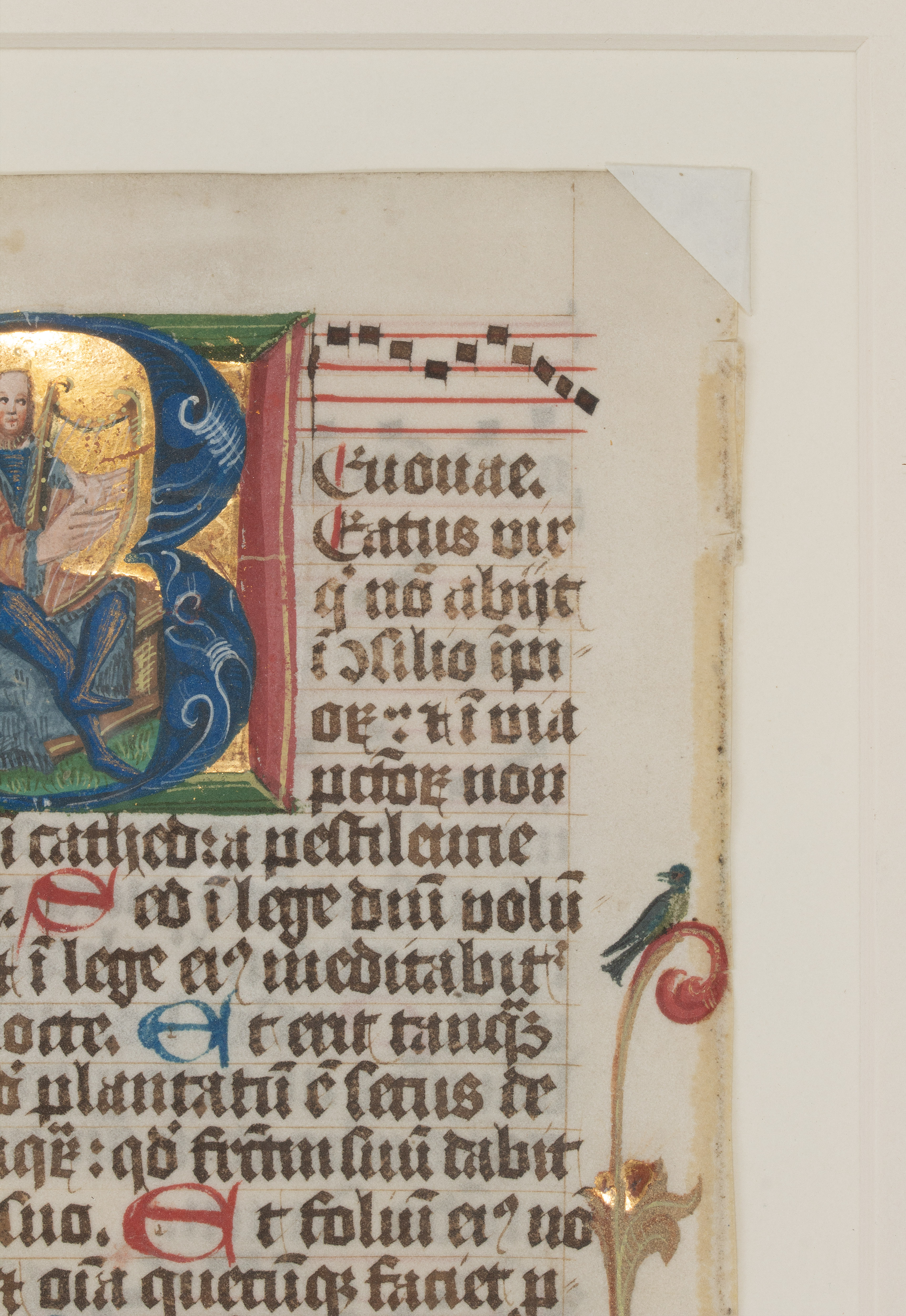 A 16C. PSALTER LEAF HISTORIATED INITIAL WITH KING DAVID