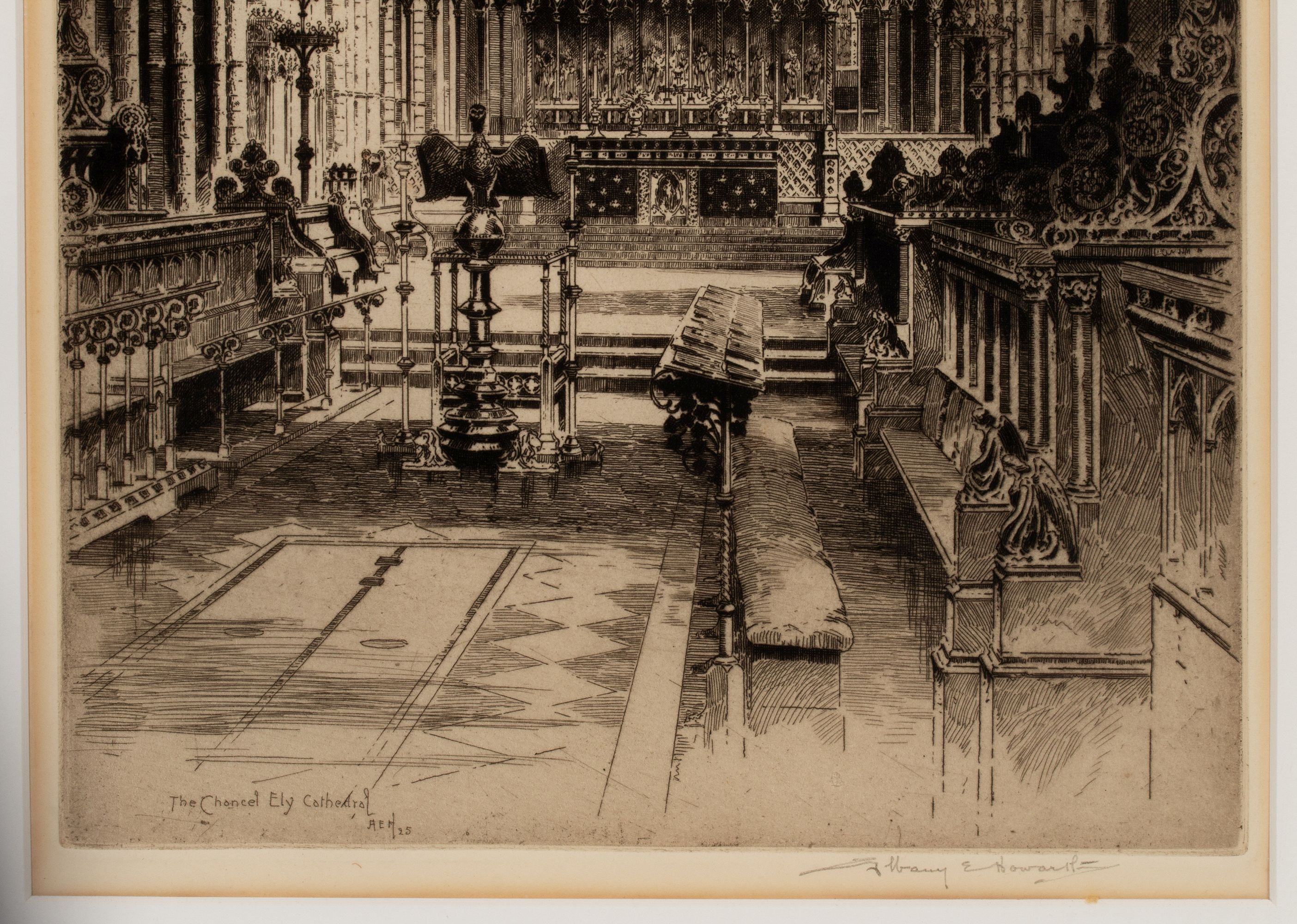 1) Albany E. Howarth (Britain, 1872-1936) The Chancel Ely Cathedral (1925). The etching is signed by the artist in pencil below the image lower right and titled within the plate lower left.
