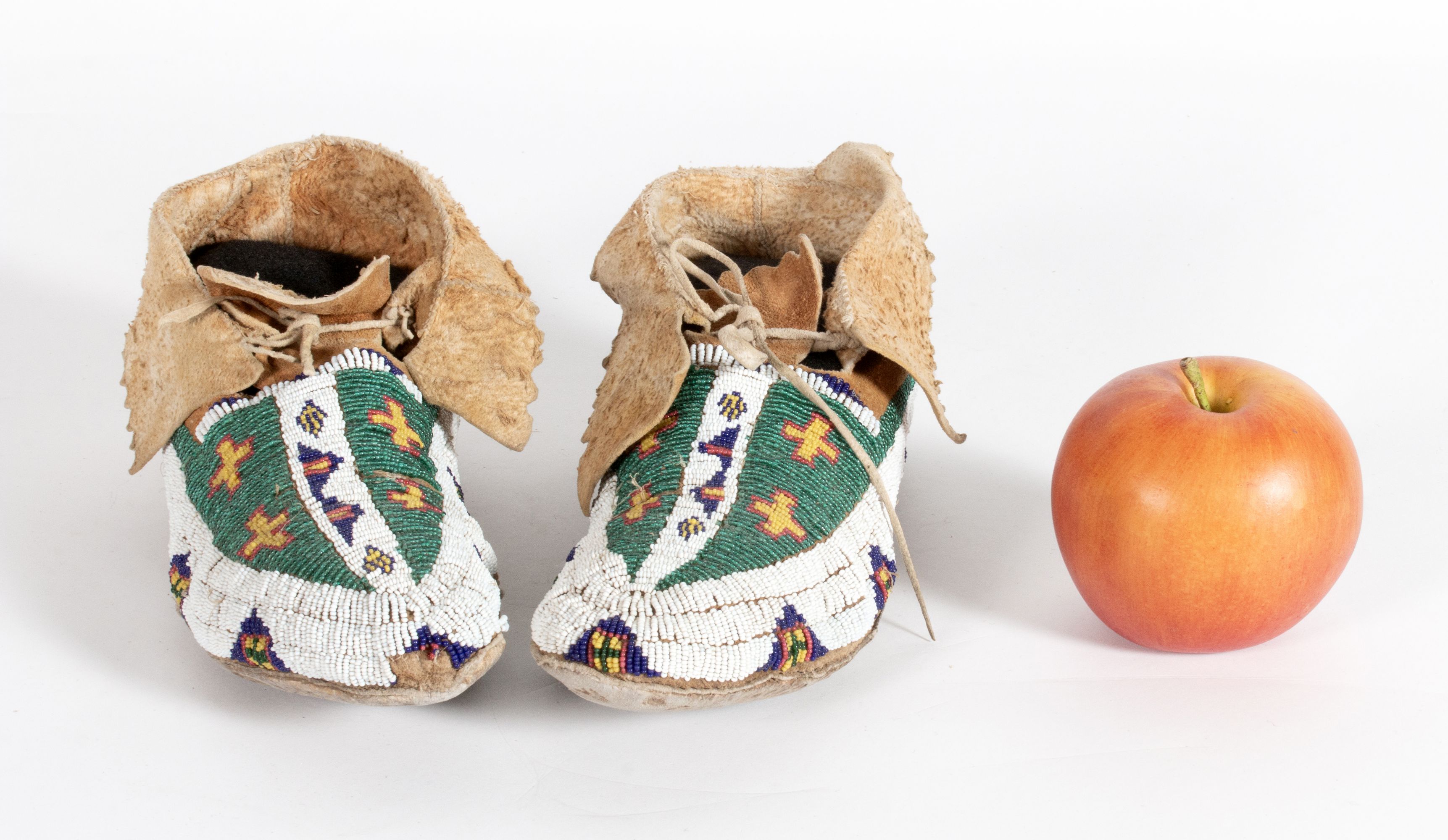 A PAIR CIRCA 1900 NORTHERN PLAINS BEADED MOCCASINS
