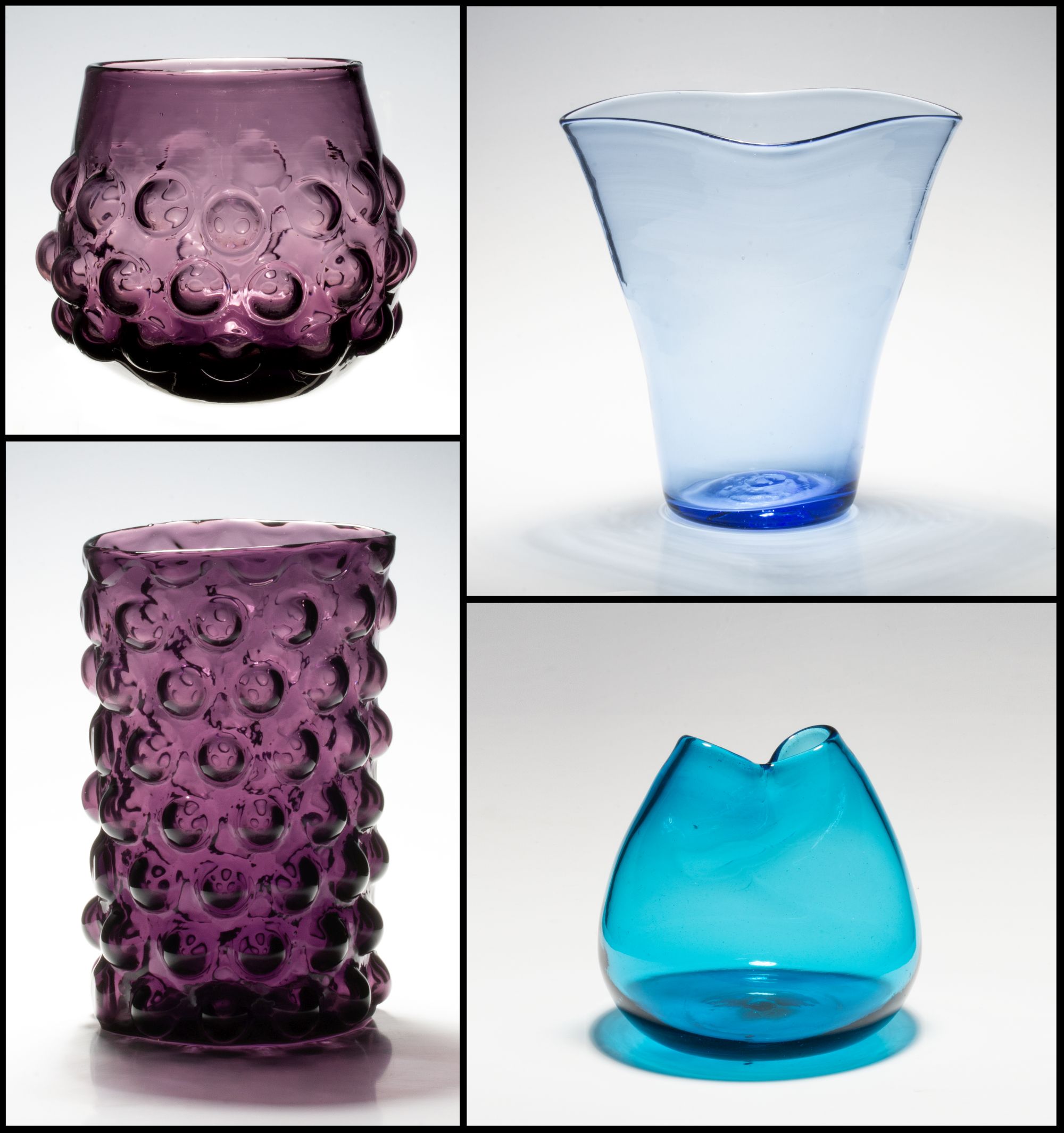 Two 'Vineyard' examples designed by Wayne Husted, and two 'Pre-designer' examples in blue.