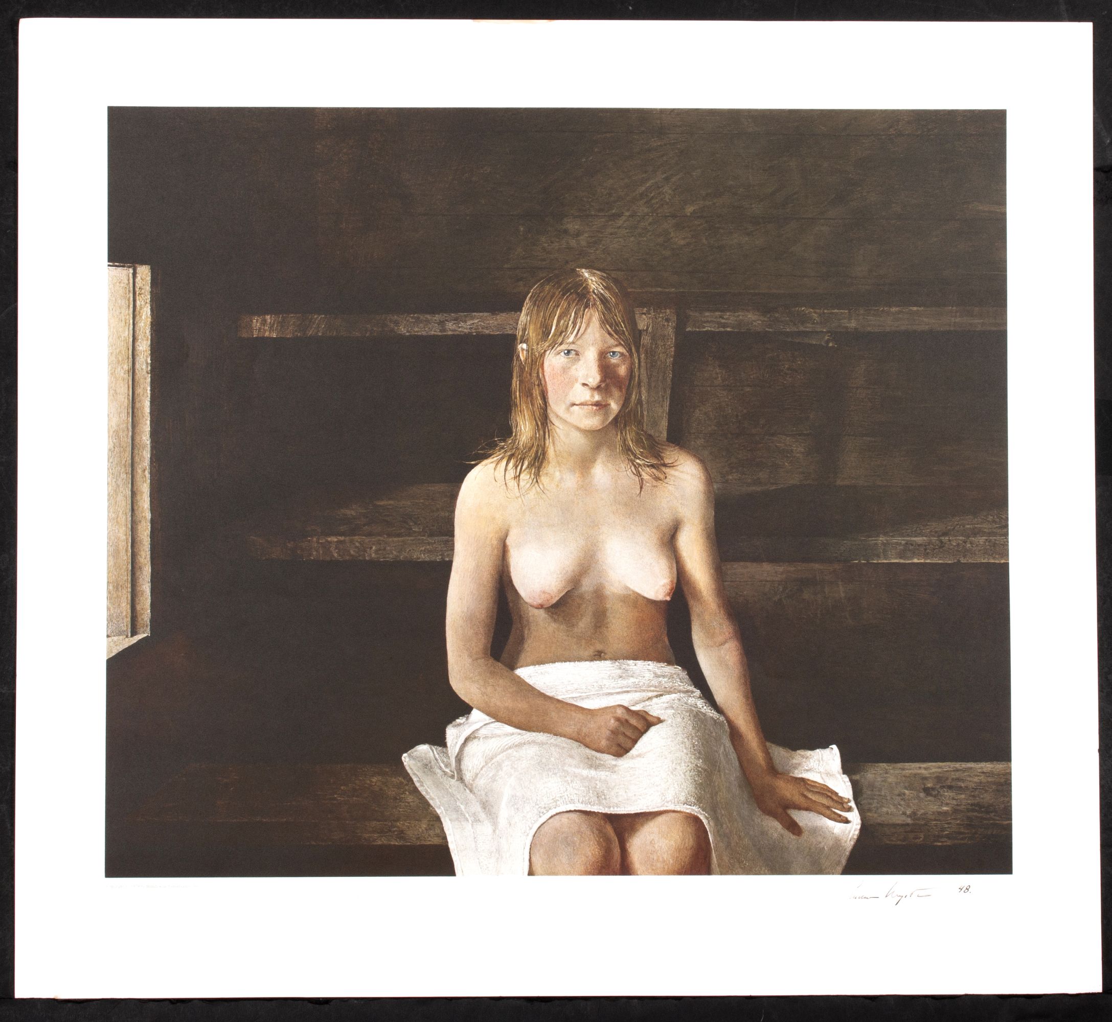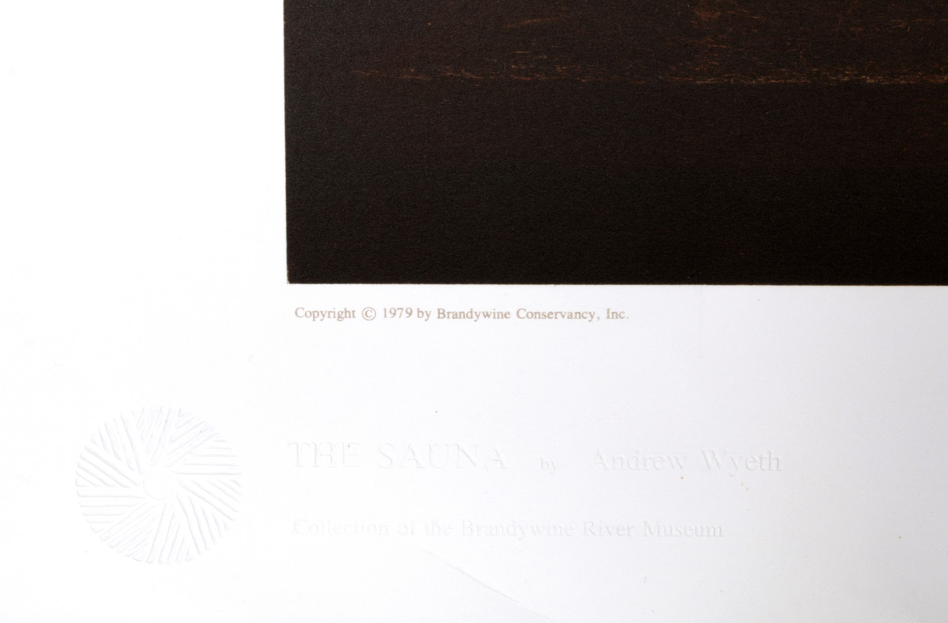 1. An unframed collotype by Andrew Wyeth (1917 - 2009) titled The Sauna, signed by the artist lower right, blind stamp lower left, circa 1979, edition of only 200 prints.