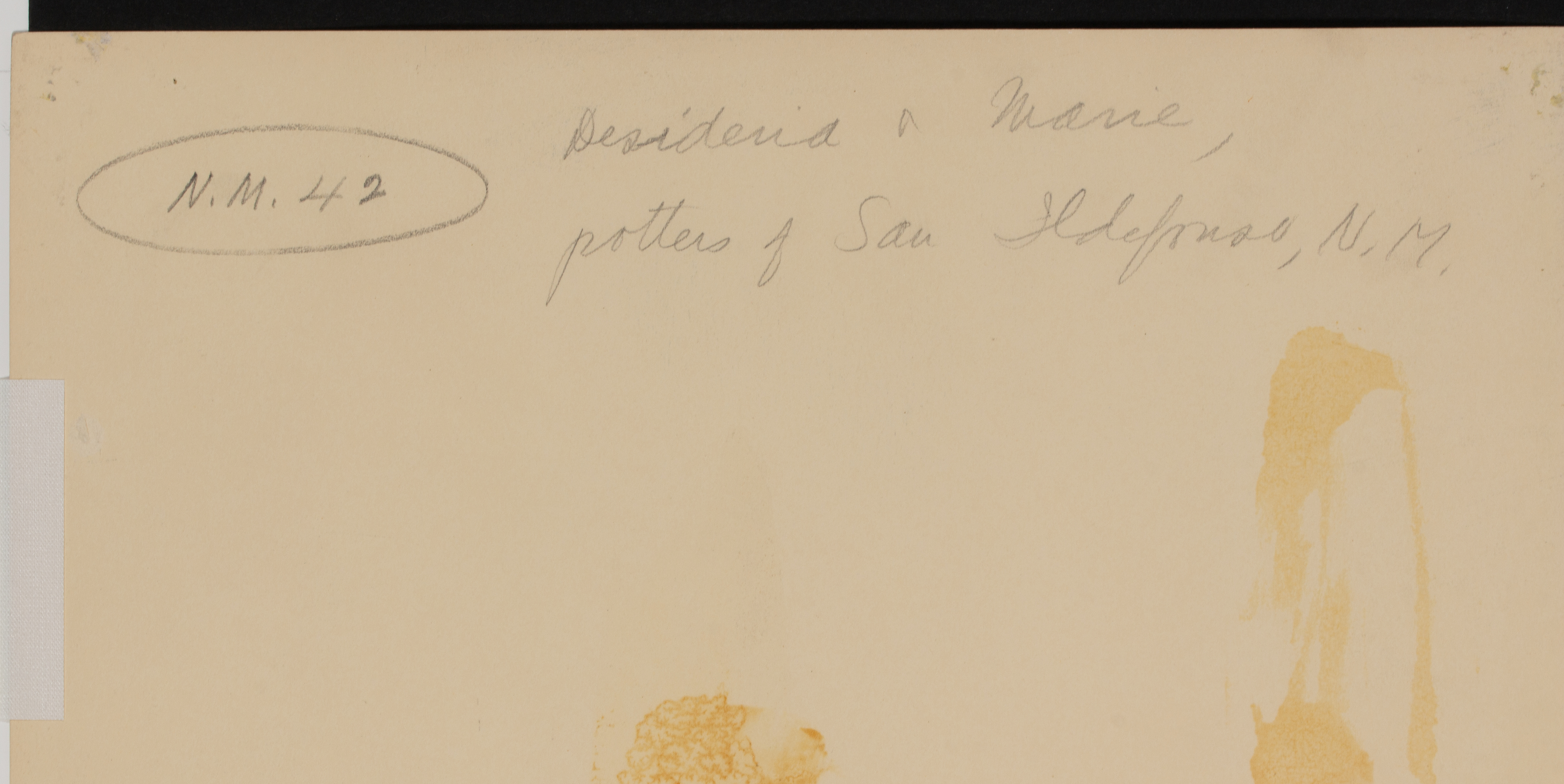 The circa 1935 photograph of Marie Martinez with her sister Desideria beside a monumental stone-polished pot is stamped by the photographer verso and the title is inscribed in graphite back side of the mount.