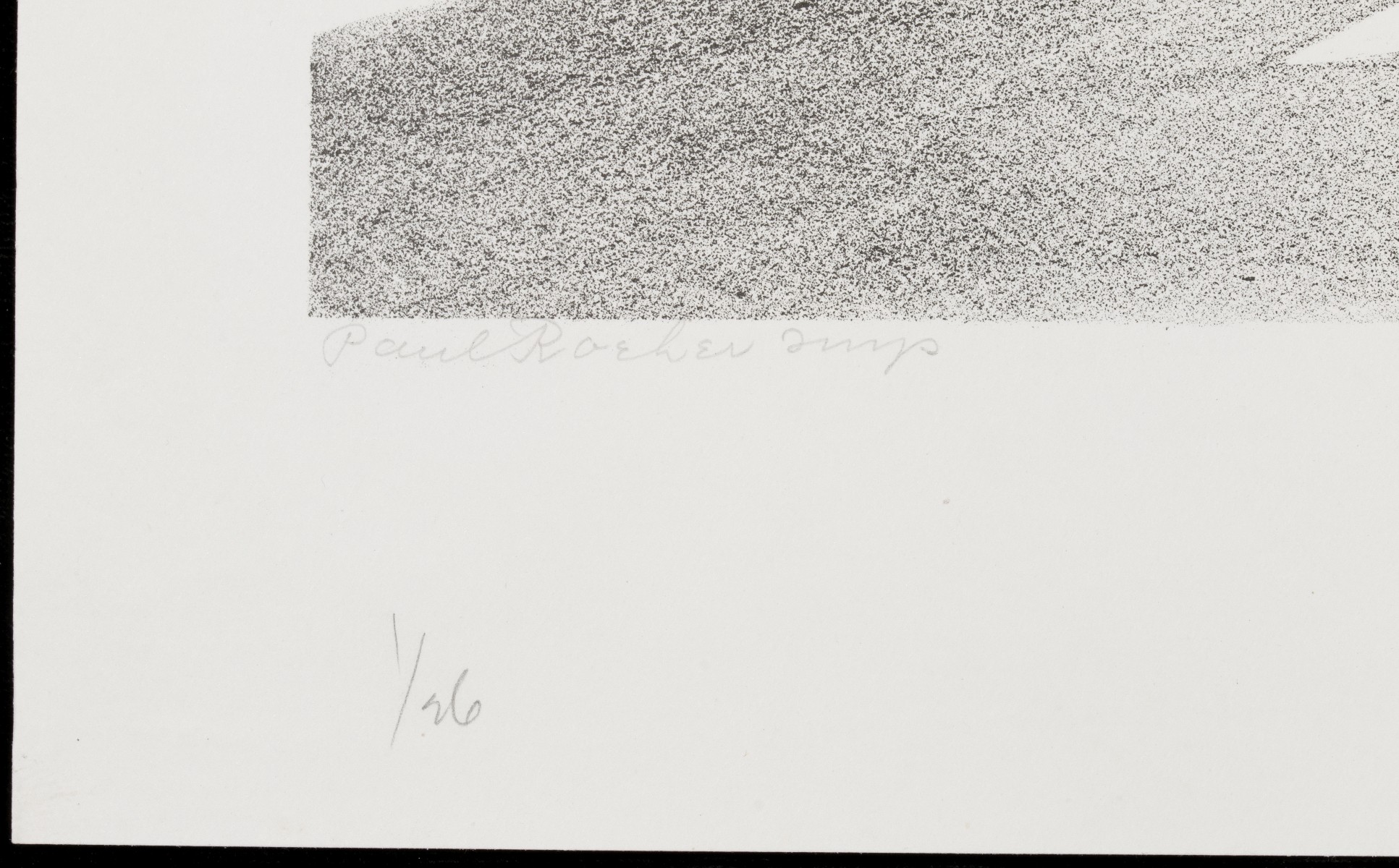 The lithograph, numbered 1 in an edition of only 26 prints, is signed by the artist in pencil below the image lower right and titled lower center. The nice example with rich texture was printed by Paul Roeher in Los Angeles. Unframed.